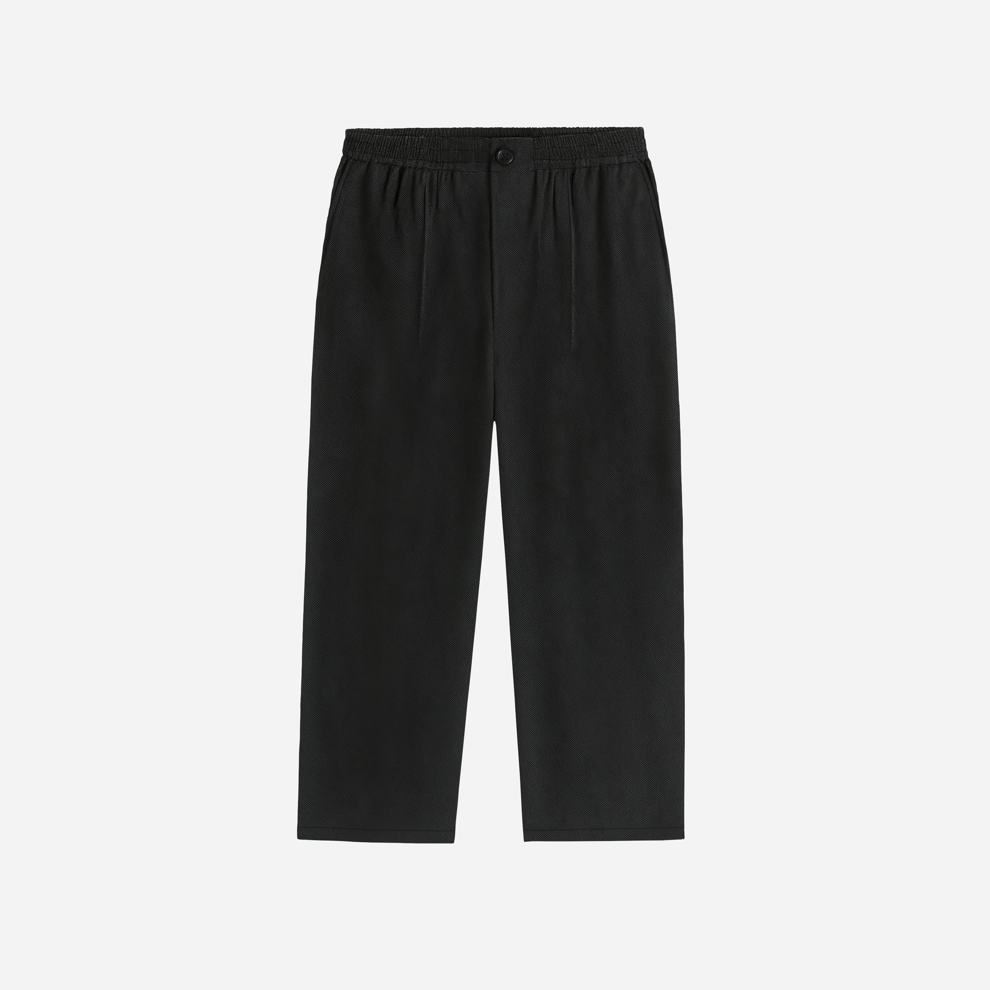 The fit is a loose tapered cut with an elasticated waist for comfort.